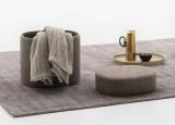 This multi purpose storage unit is made up of 3 stacked elements: padded base, tray and cushion top with removeable cover. The base also serves as a storage unit, and both the base and cushion are upholstered. Available in a large range of fabrics, ecoleather & leather in a choice of colours & textures. The removeable polyurethane rigid tray is lacquered in moka shine or micalised nickel.