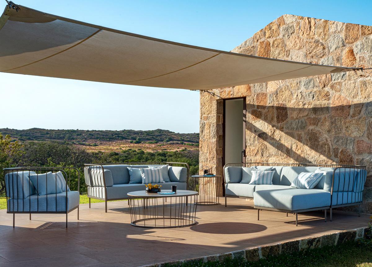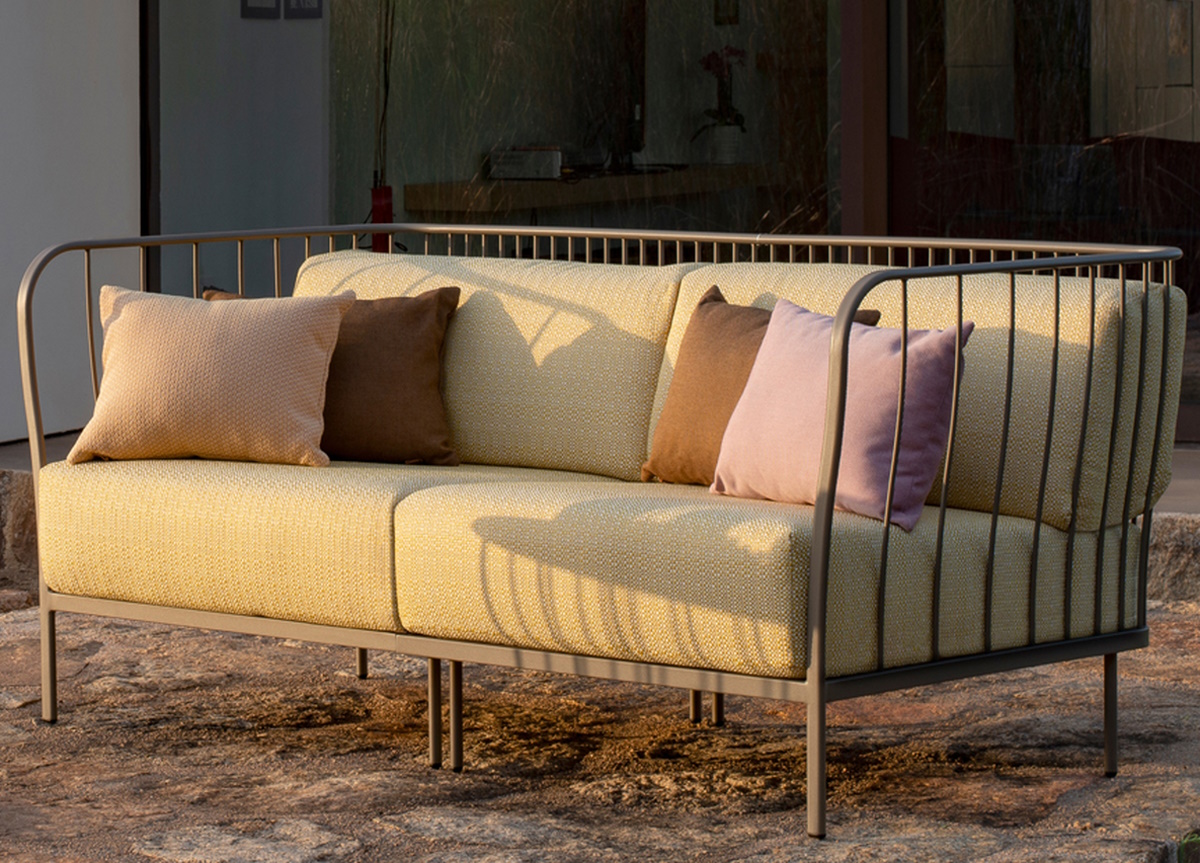 Deep comfortable Cannole cushions are made of polyurethane rubber to which a layer of polyester fibre resin is added, all packaged in an internal waterproof polyamide pillowcase. Cushion covers are in a range of garden suitable fabrics chosen for their ability to withstand the elements and suitable for use outdoors. The metal frame can be selected in a variety of different colours.
