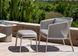 The Carousel garden footstool by Sebastian Herkner for Italian brand Emu is part of the extensive Carousel collection which also includes dining chairs, lounge chairs, a sofa and coffee tables.