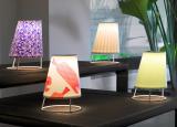 Designed by Chiaramonte and Marin, the frame is in matt white lacquered steel, with a either a pleated white fabric shade or four colourful fabric shades.