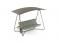 Frame in painted steel, canopy in olefin and double braided beige rope. Three different colour ways; antique iron frame and dark grey canopy; matt white frame and white canopy; or grey-green frame and taupe canopy. All three options have beige rope. Accesories: Eco leather storage bag or small teak shelf.