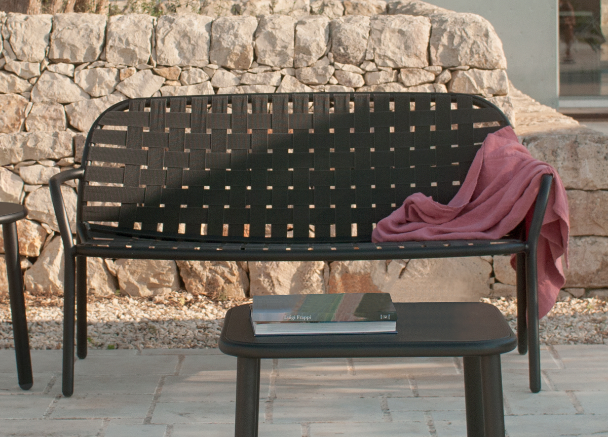 Made in Italy by Emu outdoor furniture and designed by Stefan Diez, the Yard garden sofa has a strong aluminium frame with woven elastic straps that form the seat and backrest, providing ultimate comfort. This combination of materials give the Yard collection an eclectic style and the collection also includes garden chairs, garden tables, sun loungers and much more.