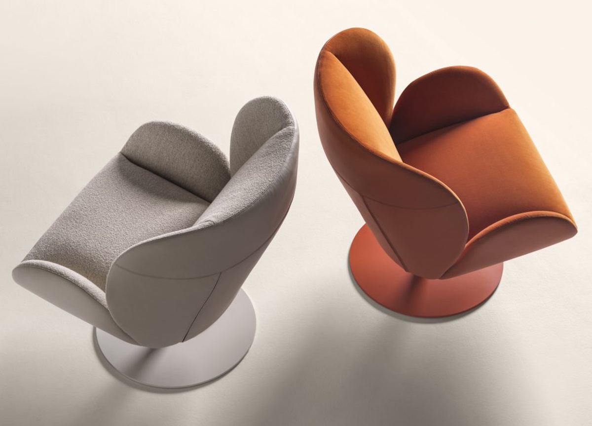 The swivel based Frag Ocean armchair by Werner Aisslinger has a strong personality which will coexist happily with a wide range of styles, a hybrid combining classicism and modernity, its design recalls the soft shapes of the iconic chairs of the 60s and 70s.