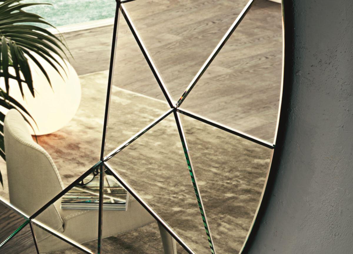 The Dream mirror is a stunning piece of luxury modern glass design, the circular fame holds a geometric pattern, designed by Ricardo Bello Dias and for Italian brand, Gallotti & Radice, who hand make them in Italy.