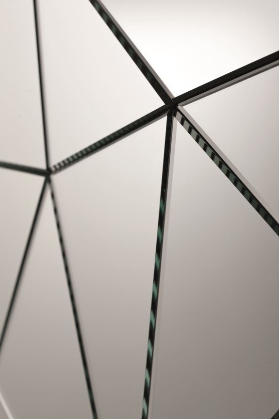 The glass used is hand polished for an extra clear finish. The central octagonal area is surrounded by 40 inclined mirror pieces on different levels to create this magnificent statement piece. There are two sizes available, 120cm diameter or 150cm, and it has a depth of 6cm.