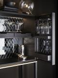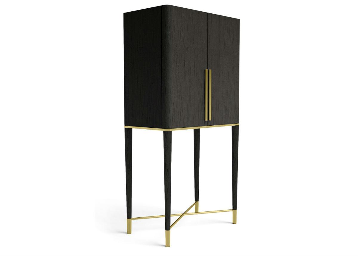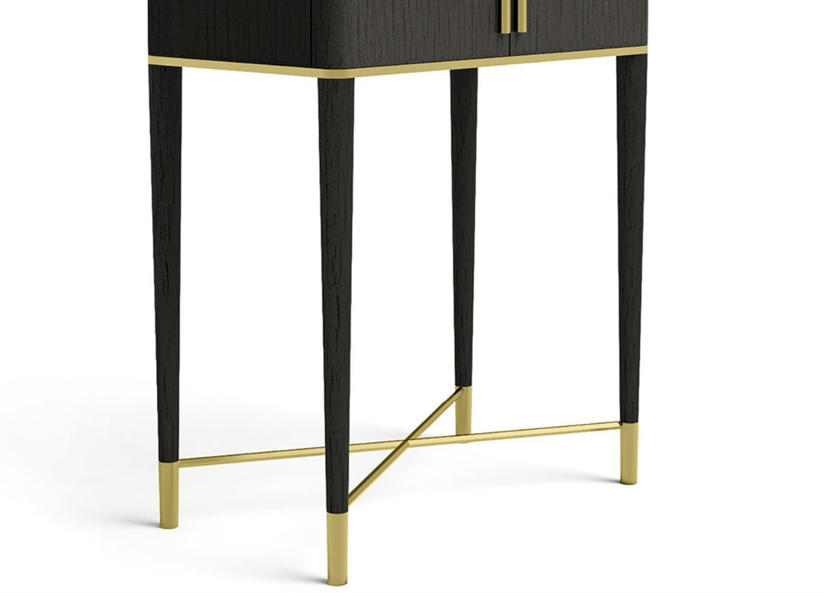 The Tama drinks cabinet in finished in black lacquered ash wood with satin brass accents to complement the black lacquer. The interior is covered by engraved smoked "grigio Italia" mirror and there is also a light for easy use and lifting. Equipped with internal LED light (15 watts) activated by a sensor when opening the doors. (LED 15W - 108lm/w, 3000K).