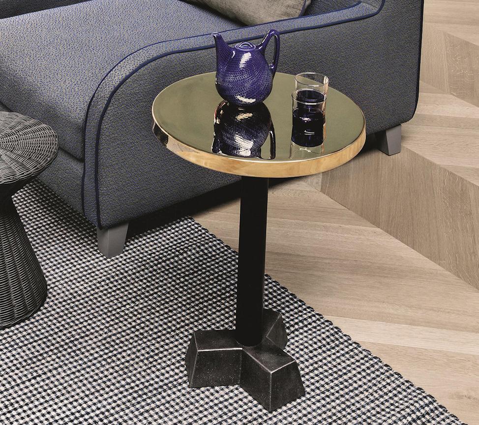 Available in two round sizes in two heights, Brass tables have an elegant sculptural look and feel and are made with materials that will embellish any interior thanks to their luminous reflections, either cold and silver or warm and golden.