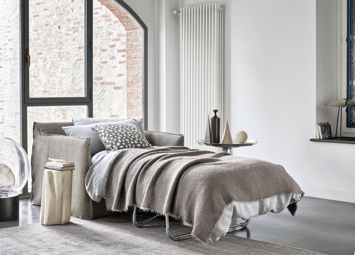 The Gervasoni 1882 Ghost armchair bed by Paola Navone quickly changes from an extremely comfortable armchair to an incredibly useful single bed by simply folding out the metal frame complete with a 12cm polyurethane foam mattress.