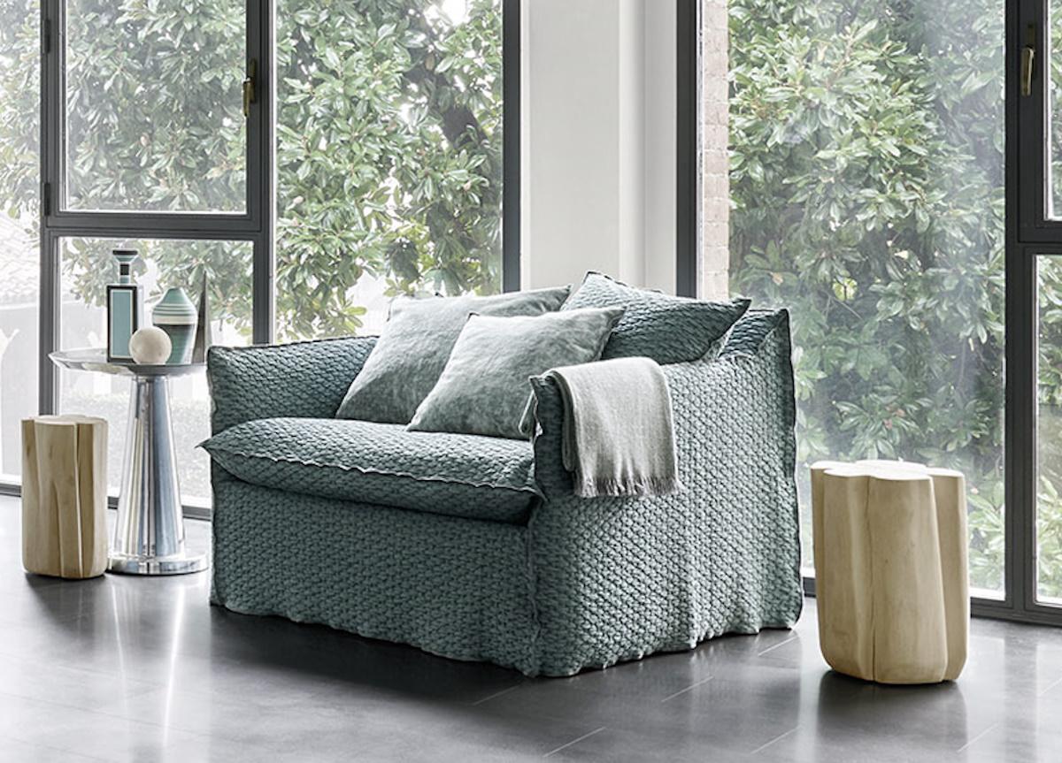 Gervasoni armchair beds are available in several categories of fabrics from natural materials like cotton or linen, to wool and velvet. The fabrics range not only in colour and texture, but also according to quality, resistance, thickness, and softness. Samples of all materials can be seen in our showroom & some can be sent out on request.