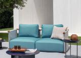 To create the Hashi sofas seen and priced here we have added together different seating elements which include single seats, corner units and a pouf to create a variety of seating compositions. Each element has a back cushion and a deep seat cushion made from variable density polyurethane foam and polyester fibres covered with outdoor polyester canvas with a non-slip breathable bottom. The strong frame is in stainless steel with a solid iroko wood backrest both of which have been treated for outdoor use.