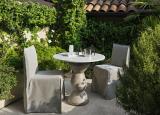 The Gervasoni Inout bistro table by Paola Navone is available in two round sizes in two different heights with a table top in white Carrara marble and a central base in crackle finish concrete.