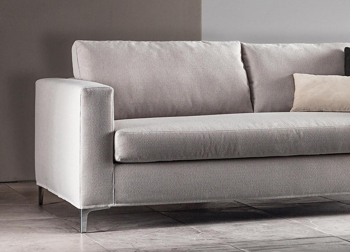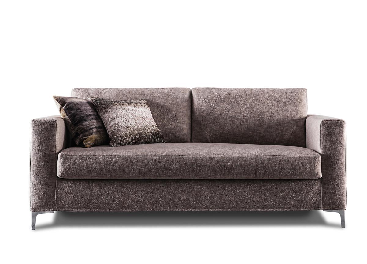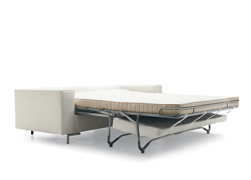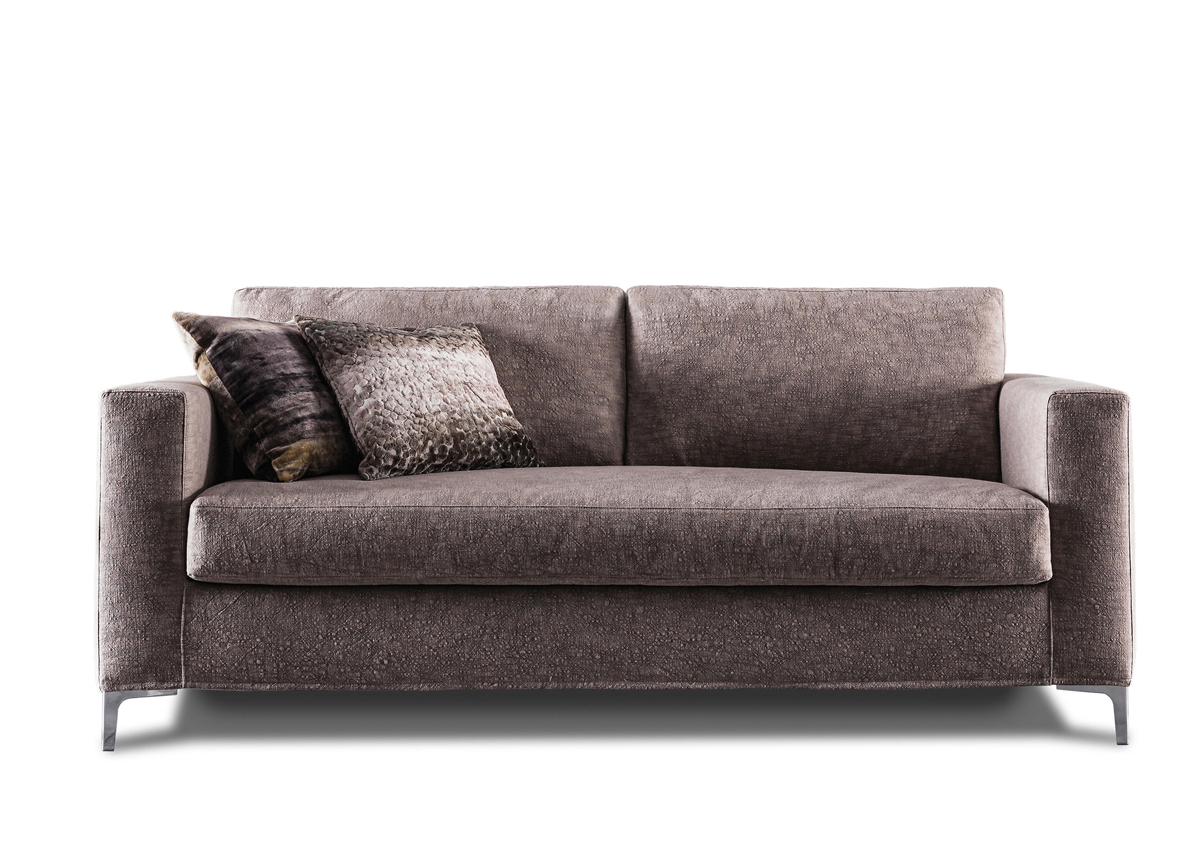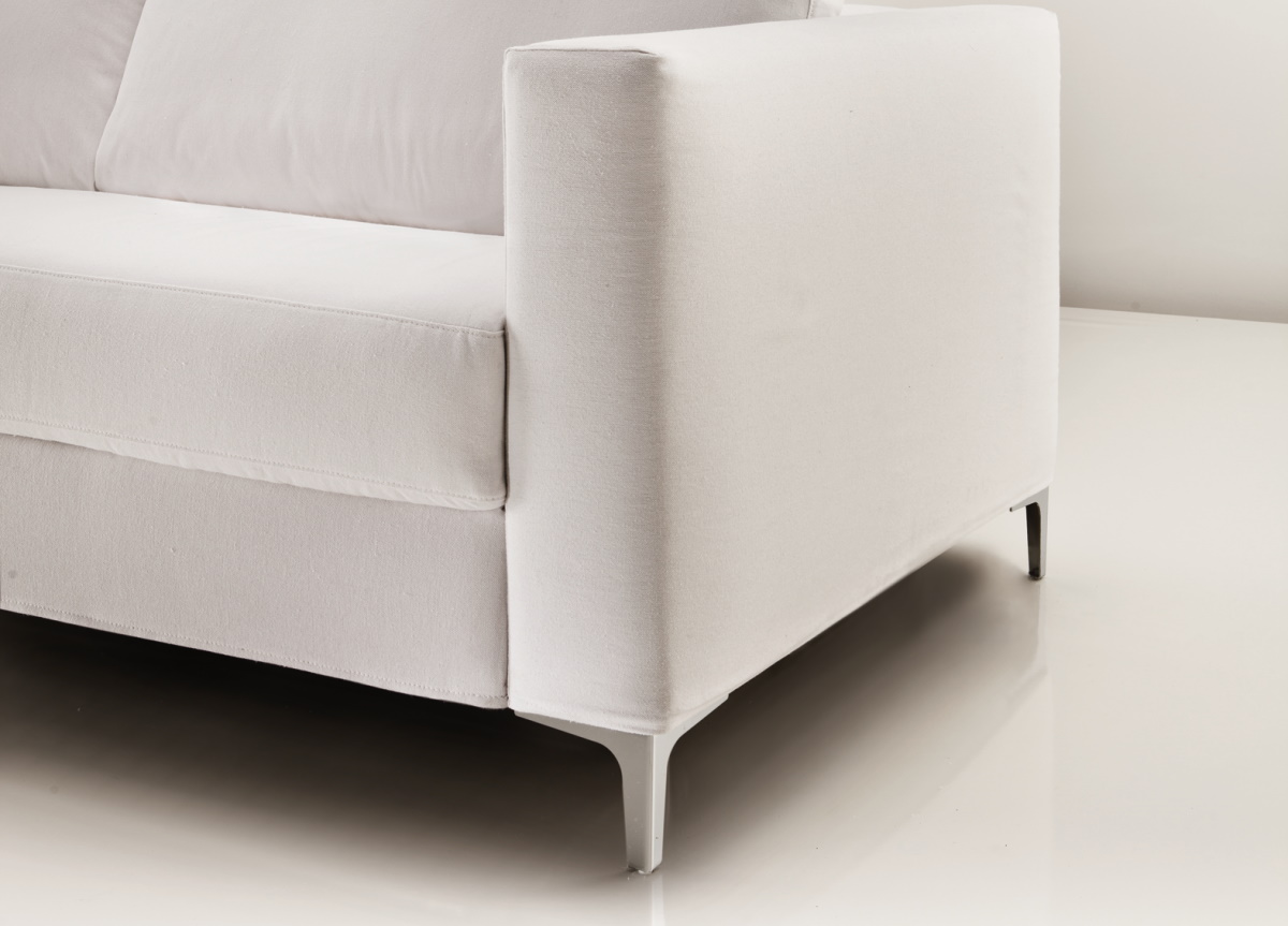The Happy sofa bed has a sturdy frame and polished aluminium feet. The seat cushions are made from polyurethane foam covered with an acrylic layer, whilst the back cushions are filled with a feather mix. Available in three different sizes, all of which come as standard with a 12cm thick polyurethane foam mattress, suitable for everyday use.