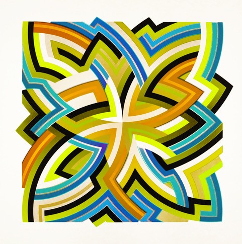 The 'InterStella Quad' series by Chuck Elliott is an exploration of geometries within art and design, inspired by the mathematics of the early works of Frank Stella, after whom the series is named.