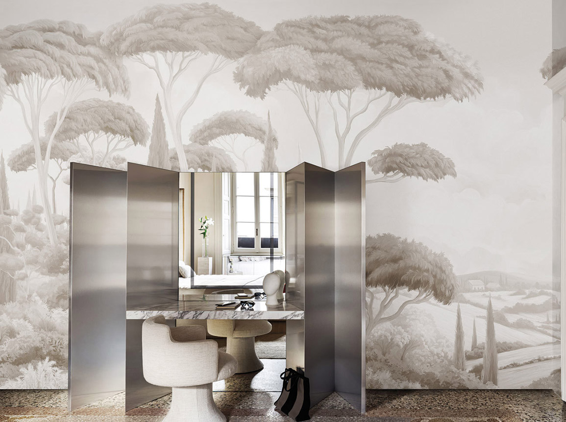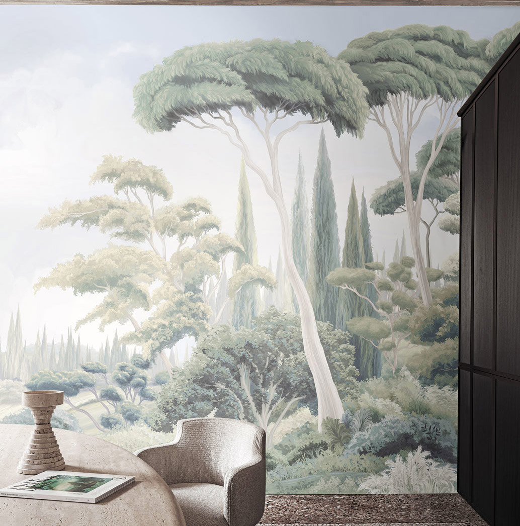 Part of the Bon Voyage series by Nicola Bottegal, from luxury wallpaper brand London Art.we love this so much we chose it for one of the walls in our showroom. As the name suggests it reminds us of the vistas of the Mediterranean, & works beautifully to provide interest without overpowering the room.
