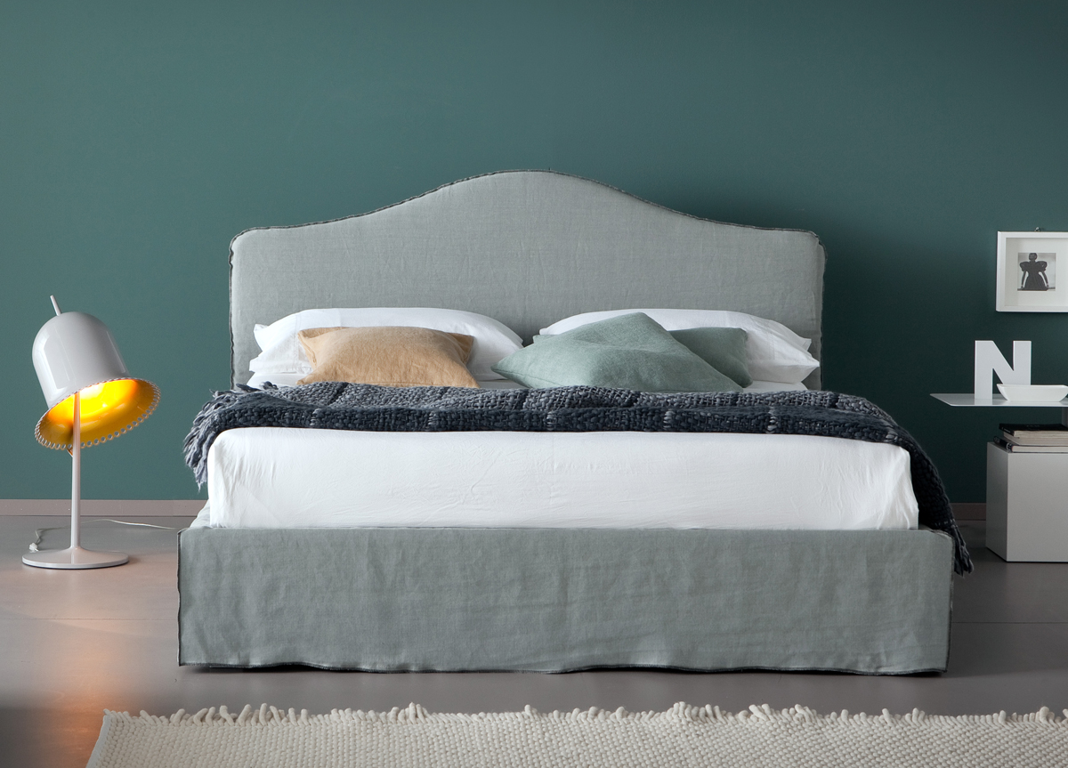 The Leandro fully upholstered bed from Italian brand Chaarme, has a timeless shaped headboard with exposed welt seams and matching or contrasting overlock stitching in a range of colours. Part of a collection of high quality, exceptional value beds, made by one of Italy's top manufacturers.