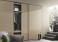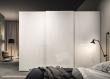 Wardrobe with glass doors, in mirrored or bronze mirrored, lacquered glass, or acid etched lacquered glass. Slim metal profiles & handles in matt lacquer or bronze eopox M421.