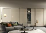 The Emery sliding door wardrobe from leading designer brand LEMA has beautiful sliding glass doors with stylish full length metal profiles that are also used as handles.