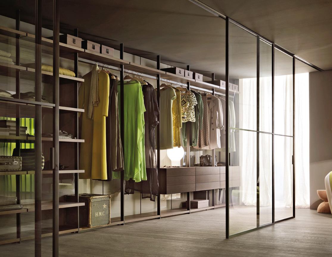 The back panels are available in white, moka larch, matt lacquer, mirrored or lacquered glass. The internal accessories are also available in a variety of finishes. There are many size options available and customisation is possible too, so it's easy to adapt this system to fit almost any room.
