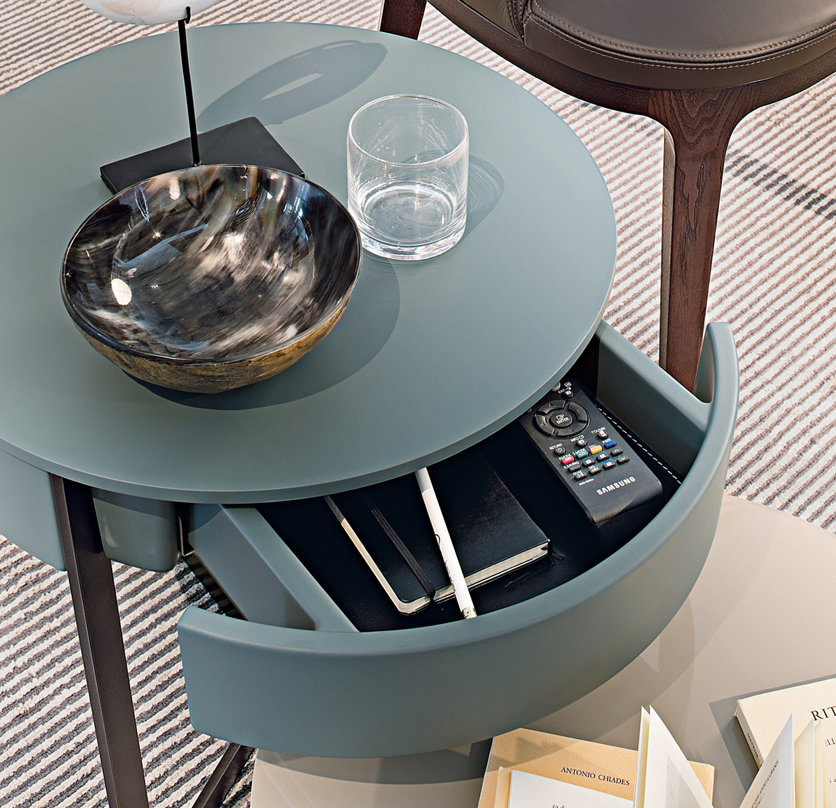 The Sign coffee/side table was designed by Studio Kairos for Lema, Italy. This version has a useful drawer and is available in both matt and gloss lacquer. There is a matching version of this table without a drawer, which is listed separately.