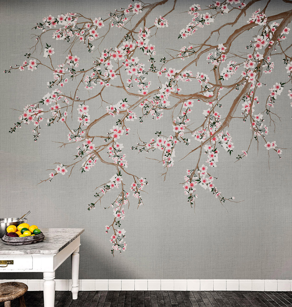 Part of the Kimono series by Nicola Bottegal, from luxury wallpaper brand London Art, Haori shows the beauty of the cherry blossom against a slightly metallic surface - difficult to see in the photos as it is so subtle. Theres a bronze, gold, & silver as well as a non metallic beige & black.