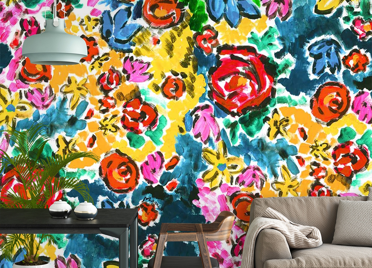 Rejoice wallpaper is a celebration of nature and warmth created by London Art in collaboration with the Italian brand Marni, it depicts a blossoming bush in rich, vibrant hues. Brimming with energy and life, this wallcovering envelops interiors in a welcoming, calming ambiance and lends a strong sense of character to its surroundings.