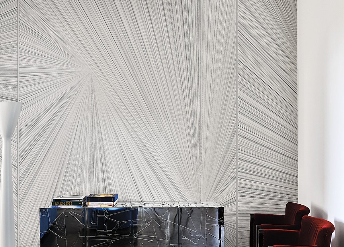 Part of the Exclusive collection from on-trend Italian wallpaper brand London Art Vortex has a contemporary geometric design, where sharp, rhythmic lines unfold against a minimalist background. This contrast brings the surface to life, effortlessly amplifying space while introducing energy and depth. The result is a dynamic visual experience that elevates interiors through striking movement and refined elegance.
