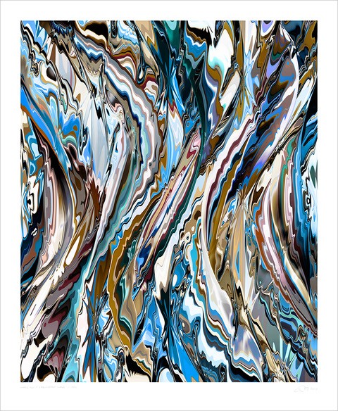'Lyric SV / cerulean wave' by Chuck Elliott is a variation on the artist’s original ‘Lyric' geometry, working with a more liquid, fluid digital treatment to create a painterly style of abstraction within the piece.