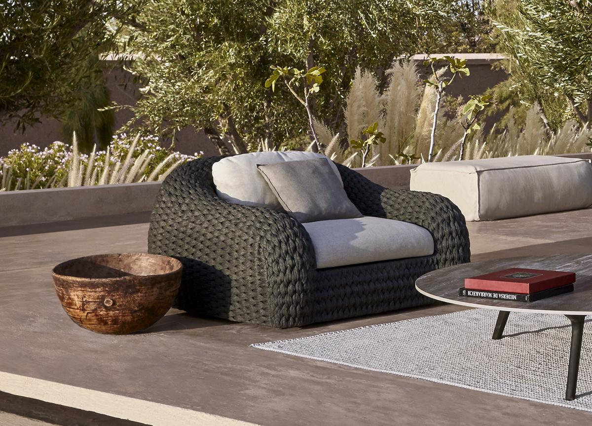 The Kobo collection is made using 45mm hand woven rope which rests upon a strong, invisible frame. The rope is available in two colours; anthracite or pepper.