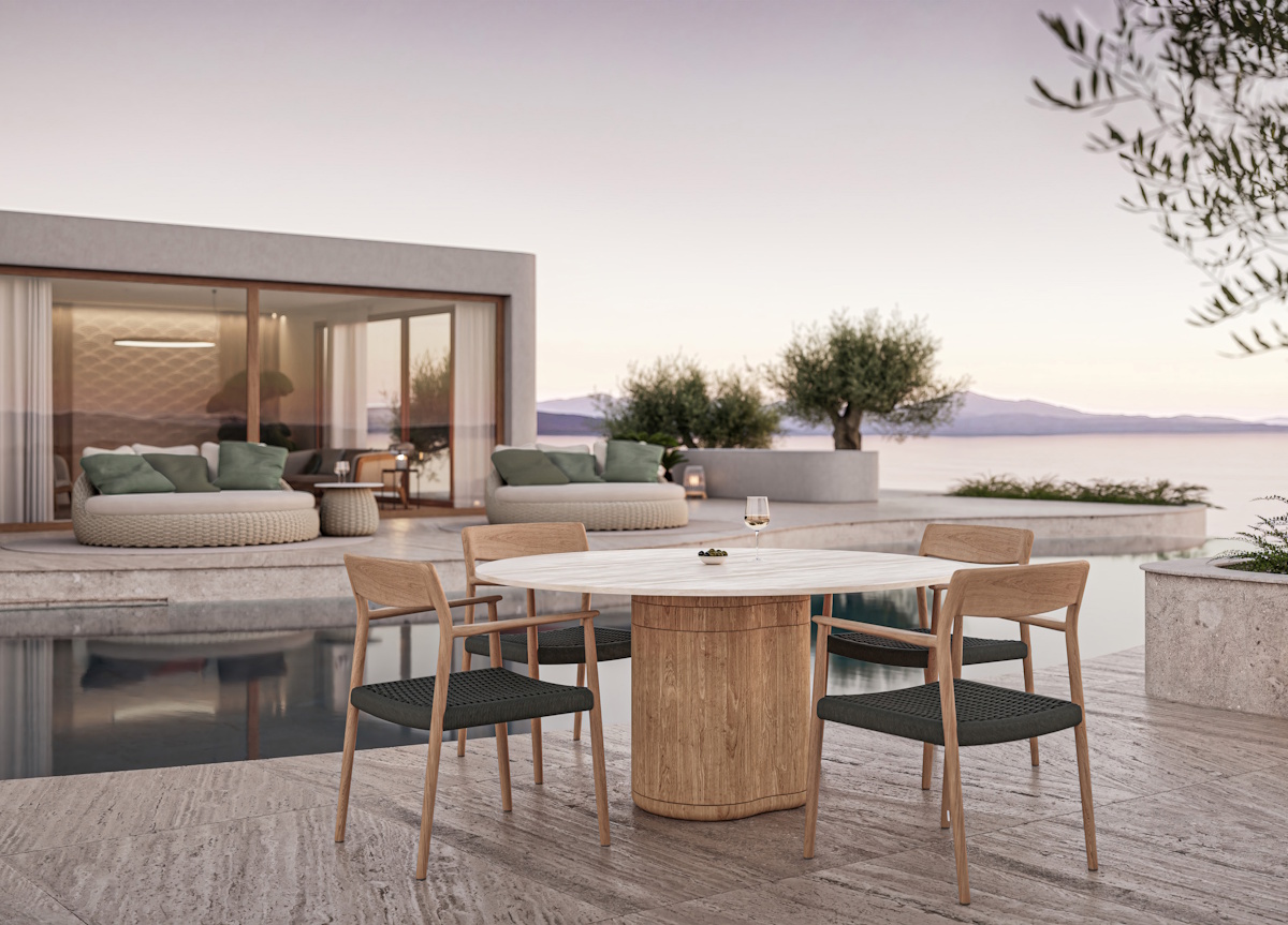 Made in Belgium & designed by Stephane De Winter the Kobo collection, which also includes a sofa, armchair, coffee table & sun lounger, features soft curved lines created by using hand woven 45mm rope in either pale pepper or dark anthracite to cover a strong, invisible frame.