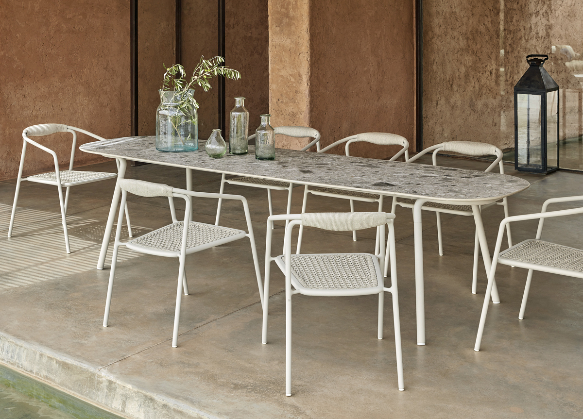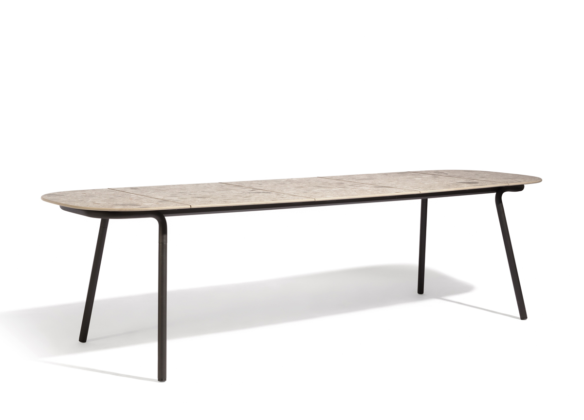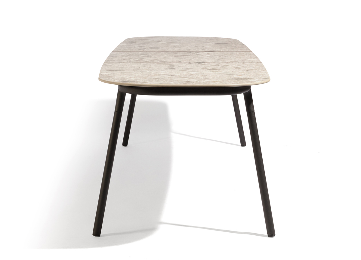 Available in three rectangular sizes with rounded ends, including an 85cm wide Minus garden dining table which is perfect for narrow spaces. The two 100cm wide tables have a single table top, however, the 85cm wide table has a table top in five sections.