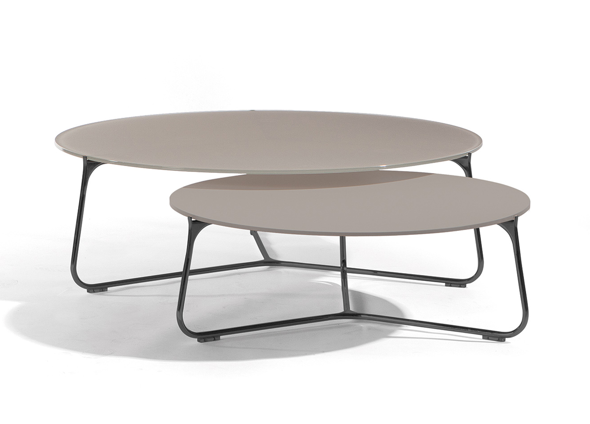 Available in three sizes, the Mood coffee table has a powder coated aluminium frame which can be selected in white, lava or flint.