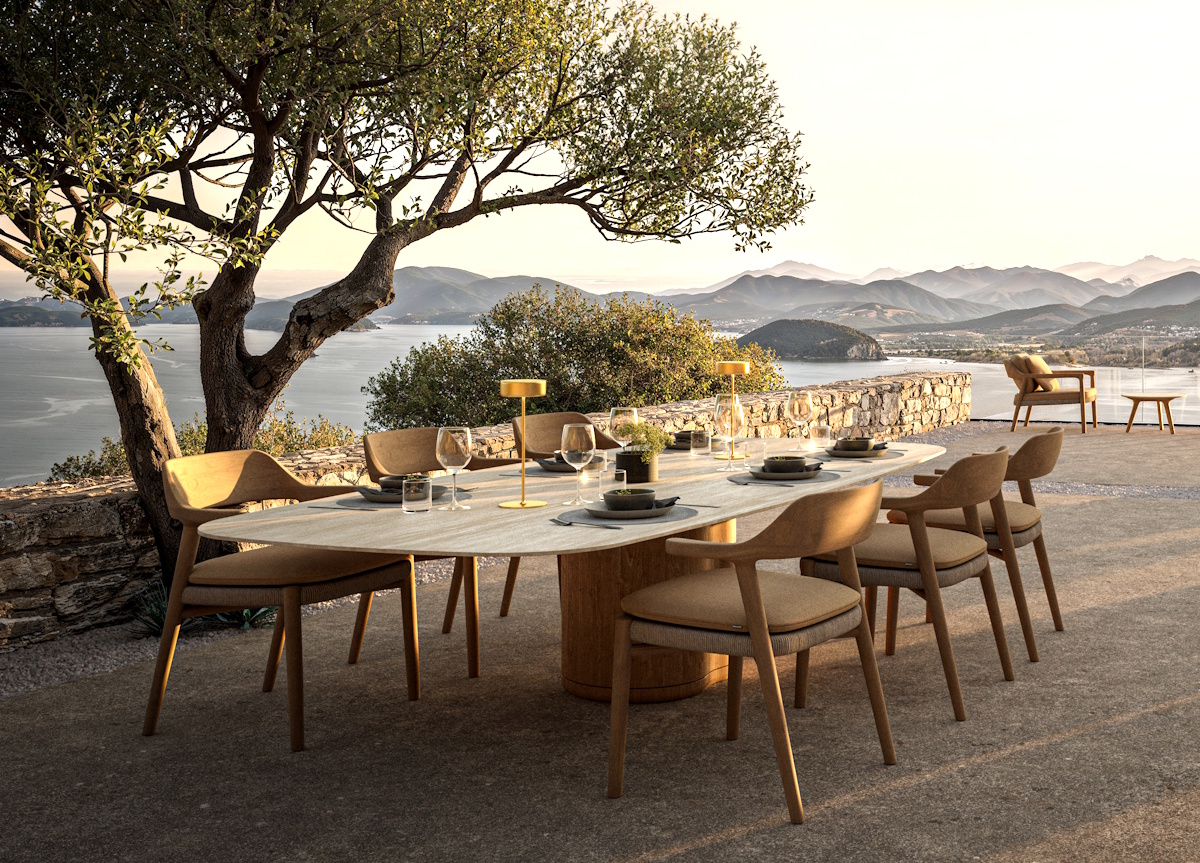 Luxury garden dining at its finest. With the introduction of the Manutti Ogado boat-shaped dining table, the Ogado collection continues to evolve as an expression of organic elegance and refined outdoor living.