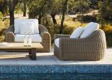 This outdoor armchair is hand assembled and made from 6mm thick Old Grey synthetic wicker which is easy to clean and maintain, is toxin-free, ecological, 100% recyclable, as well as being resistant to extreme temperatures, water resistant and repellent.
