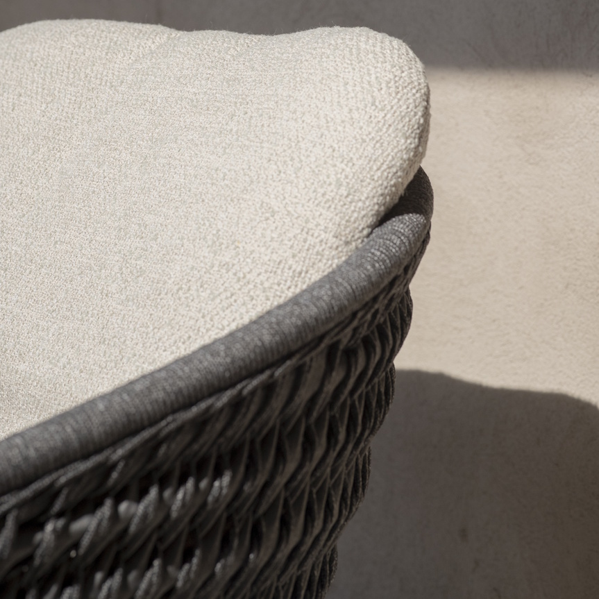 The frame can be selected in pale flint, or dark lava with Dicord weave in either pepper or anthracite. For extra comfort why not add a cushion set? The set comprises of a reversible seat & back cushion which contains outdoor, quick-drying, high performance foam surrounded by a water-repelling interliner (that acts like a raincoat).