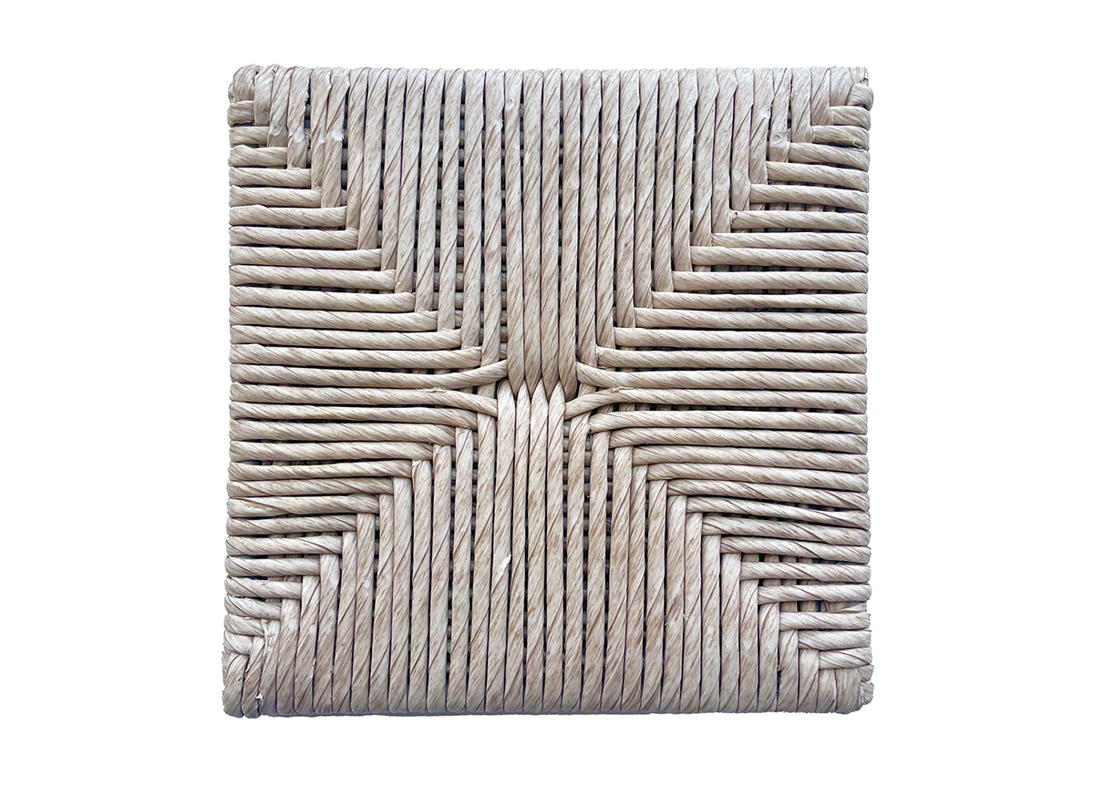 Made in sustainable natural solid teak with a seat woven in twisted chalk wicker. Cushions are available in a variety of outdoor fabrics, which can be seen in the attached pdf.