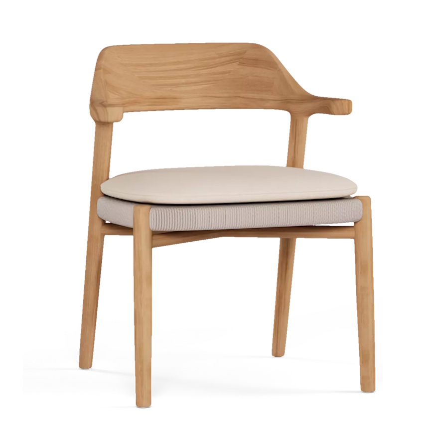 The seat – woven in recycled twisted chalk two-tone wicker - evokes a familiar sense of nostalgia - whilst the solid teak frame with small amrrests hints at both traditional craftsmanship and pure, Japanese-inspired minimalism. Available in warm natural teak responsibly sourced from ecological plantations, Yiko effortlessly complements both classic and modern environments.