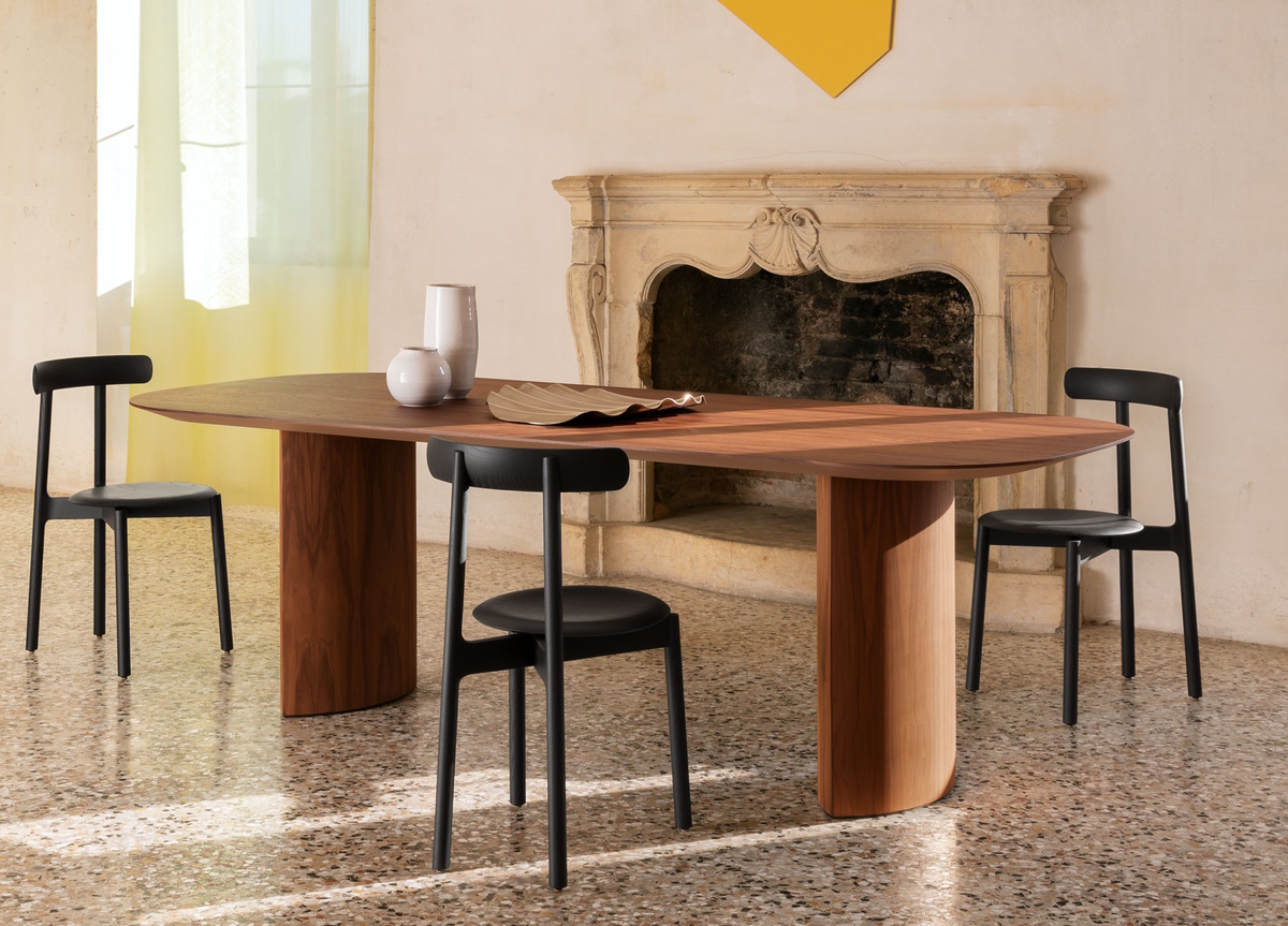 Bice is a slim and sometimes unusual chair. Its essential design is juxtaposed by its flap-ears backrest, which balances and characterises its structure. Seat and frame in solid natural ash, which can also be stained walnut, oak or black.