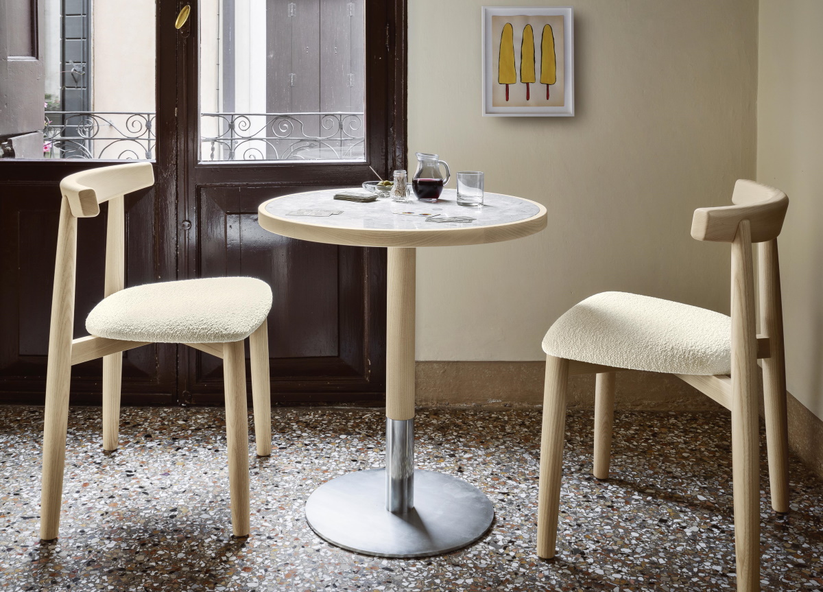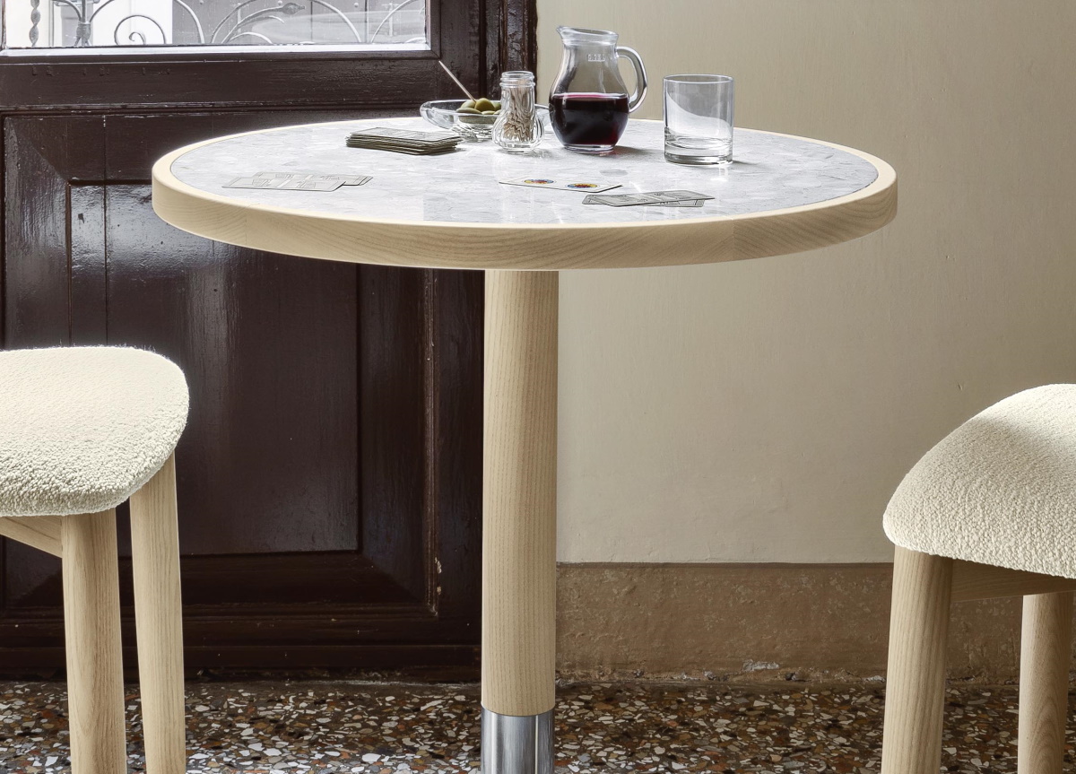 Created by the in house design team at Italian brand Miniforms, the Briscola bistro table draws its inspiration from the seventies.