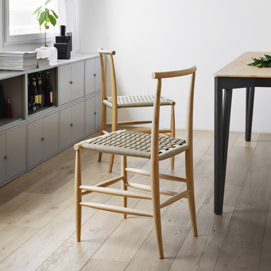 Designed by Francesco Faccin for Miniforms the Pelleossa dining chair is now available with a seat covered in straw rushes derived from the canna indica plant.