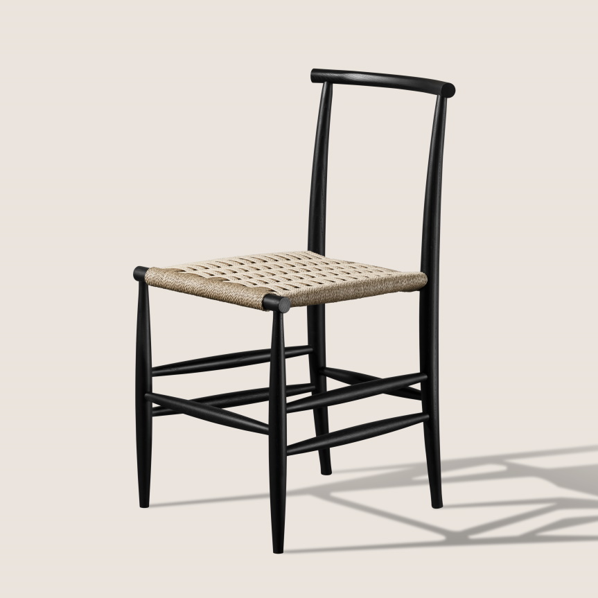 Available with or without arms the Pelleossa dining chair has a slender frame with a gently curving backrest. Inspired by the Italian chairs of pre-industrial times, Pelleossa is built with traditional materials and a unique technology, the lathe. The name pelleossa (pelle - skin and ossa - bones) evokes simplicity and lightness.