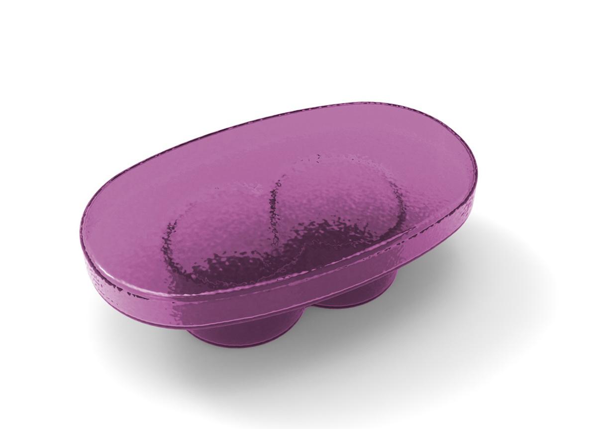 The end result is an oval table consisting of a single volume of glass with two large petals forming the stem. Smooth as a surfboard, the oval shape evokes the fluidity of 1950s French design, but with Miniforms bold voice. On its own it is enchanting, but in compositions it reveals its playful side, breaking up the inertia of more basic forms.