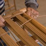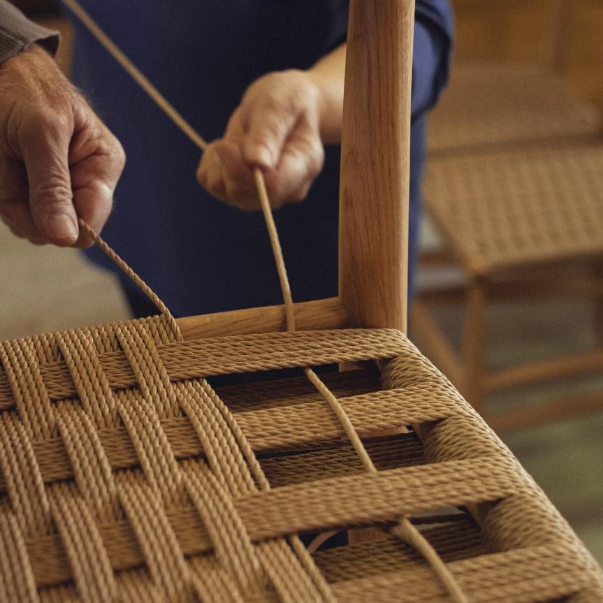 Recently updated, the seat can now be covered in straw rushes which derive from the canna indica plant. This new option is extremely durable. A checkered weave pattern is the strongest way to rush a seat because it distributes the weight evenly across the surface. This weaving process is particularly complex and demands a combination of strength and absolute precision.