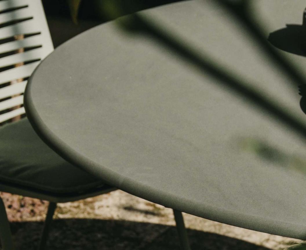 This round outdoor table can be selected in two sizes; 120cm or 146cm. The aluminium table top has rolled edges around the top and can be selected in a wide range of colours including two speckled finishes.