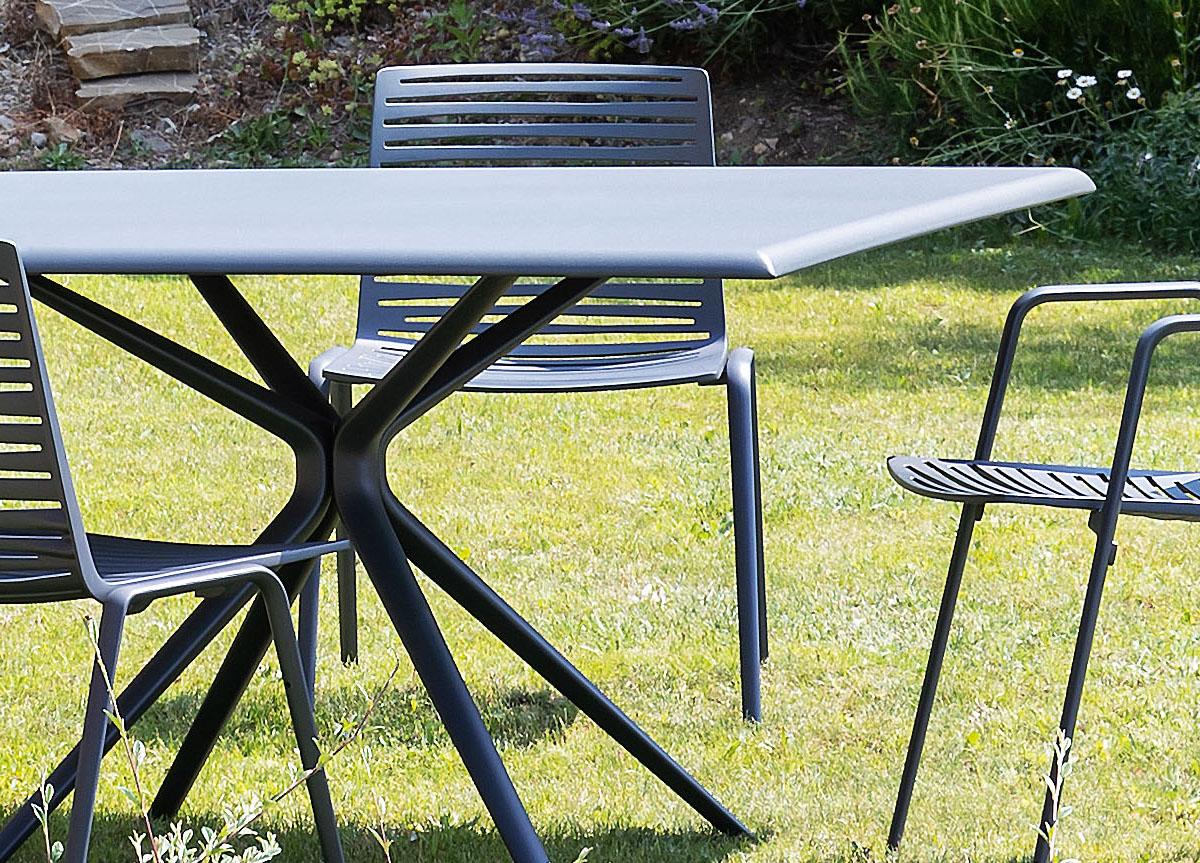 Designed by Studio Lievore Altherr, this stylish outdoor table is also available in a round version, & a rectangular version, which also have the option to also have a stone top (round table) or ceramic top (rectangular table), this table however is only available with the matching aluminium top.
