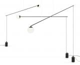 There are a number of elements to the Bitta light; firstly there is a black cement floor base which is used for positioning, a cable is then attached to a long thin metal rod which has an adjustable opal glass sphere on the end. The rod can be selected in black or stain gold and is suspended by a ceiling cable.