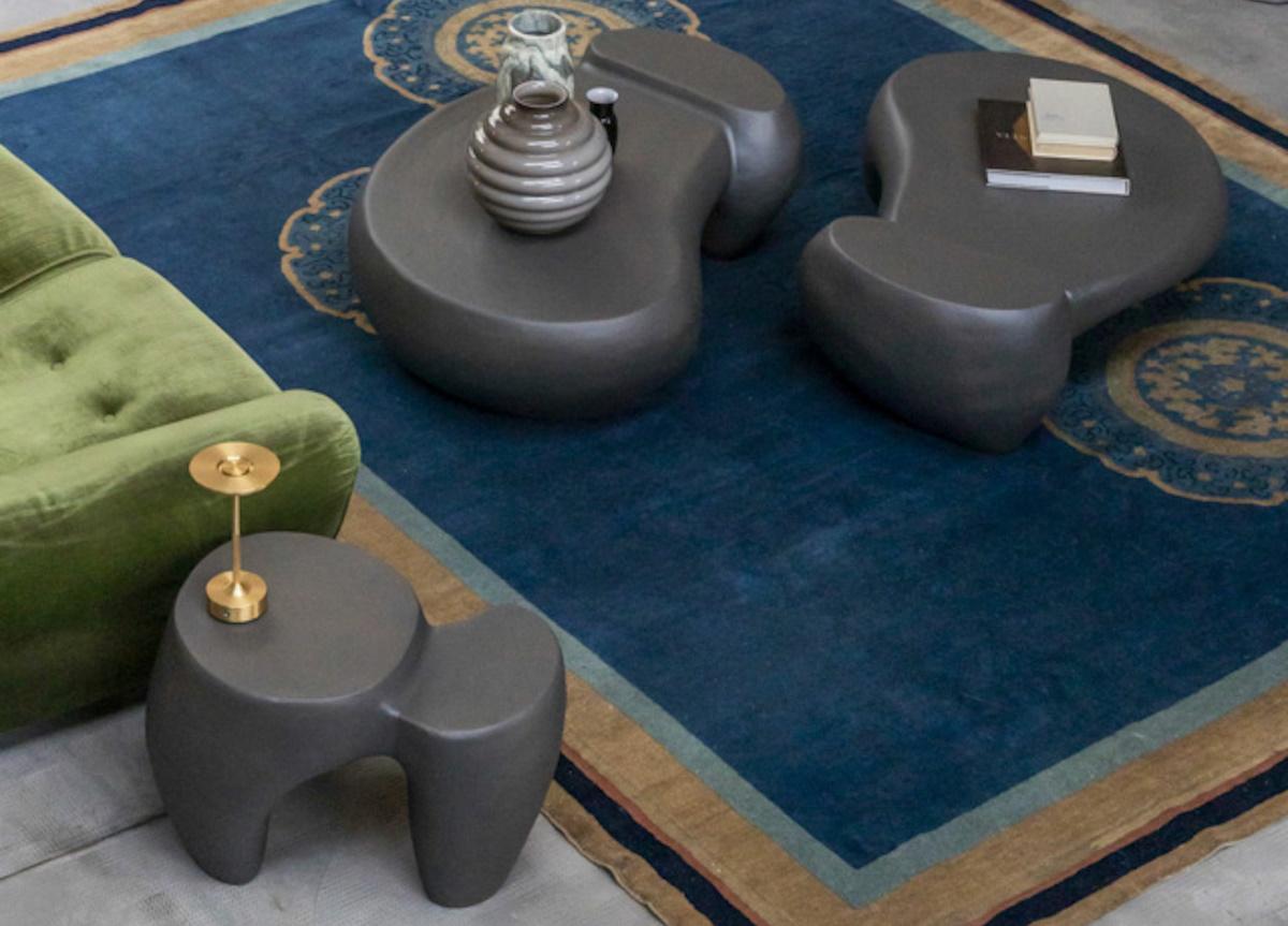 The Mogg Dune coffee table by Simone Fanciullacci is made from stoneware and has an organic, almost primitive shape which interacts with the materiality of the surface, creating objects which, like a natural landscape, seem to be constantly changing depending on how the light illuminates them.