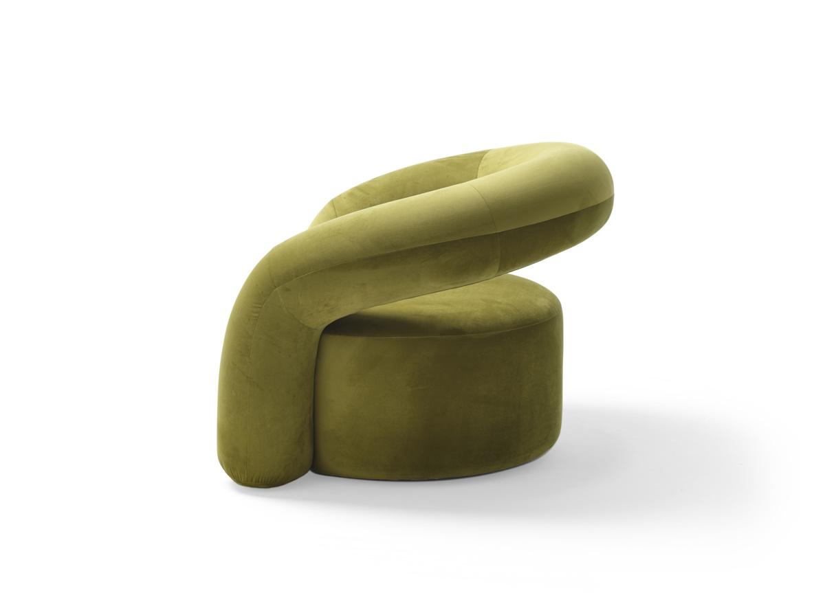 The design of the chair recalls an abstract and utopian, almost fairy-tale world, a muffled, ethereal realm, populated by corpulent but weightless docile beings, who welcome and pamper the visitors who venture there with a delicate and comfortable hug.