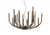 This beautiful pendant light comprises of either 6, 12 or 18 iron pipes which have been crushed with a mechanical bender, laser cut and then welded together. Each pipe carries a G9 bulb/60W max.