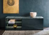 Therefore, for ease we have priced up Composition 1 (similar to the final image) which is a standard 144cm wide sideboard in a matt lacquer finish with a central tape compartment with different options for the top. We have also priced the sideboard Composition 17A seen in the main image which has side panels, shelves, drawers, plinth and back panels in petroleum blue gloss lacquer, a top in green alpine marble, glass dividers with a pewter profile, the LED lighting is not included.