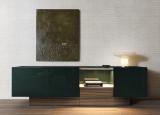 The doors, side and back panels can be selected any of the glossy lacquered shades from the Molteni&C collection, including the new pine green and almond white colours, allowing for infinite possibilities, and enabling you to match any interior design palette. The top, in contrast with the structure, is available in wood or marble. Choose from gold-toned limba or coffee oak, recognisable for its intense contrasting streaks, or marble in calacatta, sahara noir or black marquina in either a matt or glossy polyester finish.